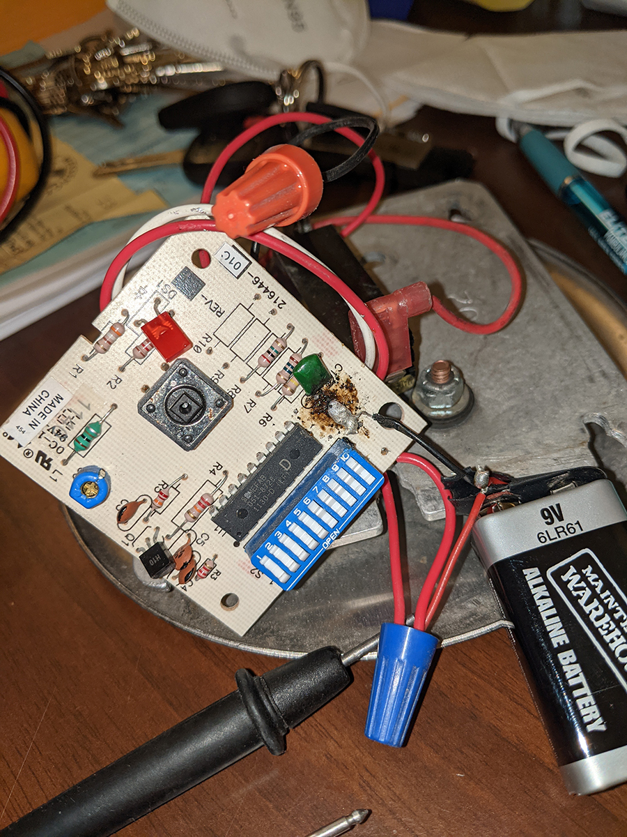 The Surface Box, Plate (with 4 - screws), Push Button, 9v Battery and Wireless 300 Mhz Transmitter