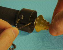 HPC’s Clean Grip Impressioning Tool holds onto the center of the key blank, not by the face. This eliminates the possibility of scratching the key blank, while providing a firm hold. It has a unique locking mechanism with a retaining pin that ensures a tight grip in the key blank. The cushioned handle is comfortable and easy to hold.This tool will hold a variety of key blanks and has been designed to be simple, quick, and dependable. With the key blank locked in place, you are ready to impression with confidence. Try it the next time you need to impression a lock.