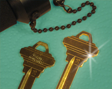 The unique locking mechanism with retaining pin provides a secure hold on a wide variety of key blanks