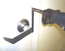 Preventing saws from cutting through the latch.