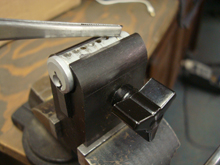 The Adjustable Plug Holder is a universal plug vise. The spring-loaded center bar can be positioned to hold plugs from .350" (8.89mm) to .600" (15.24mm) to give a perfect fit on many different cores. This plug holder is made of hardened steel with a black oxide finish for years of reliable service.