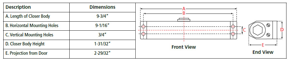 1805 Series Door Closer Parts