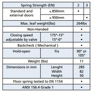 Fixed Closing Force Floor Closer for Doors up to 950lbs