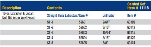 Hanson 10-Piece Straight Flute Extractor & Cobalt Drill Bit Set Includes: