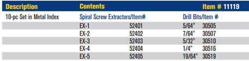 Hanson 10-Piece Spiral Flute Screw Extractor & Drill Bit Combo Set Includes: