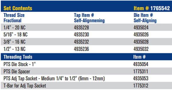 Irwin 1765542 Hanson® 12-piece Machine Screw/ Fractional Tap & Hex Die Set