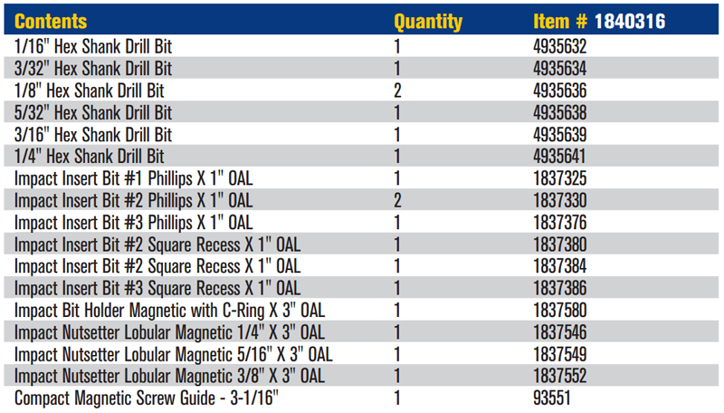 1840316 Impact Drill/Drive Set - 19-Piece, Pro Set Case