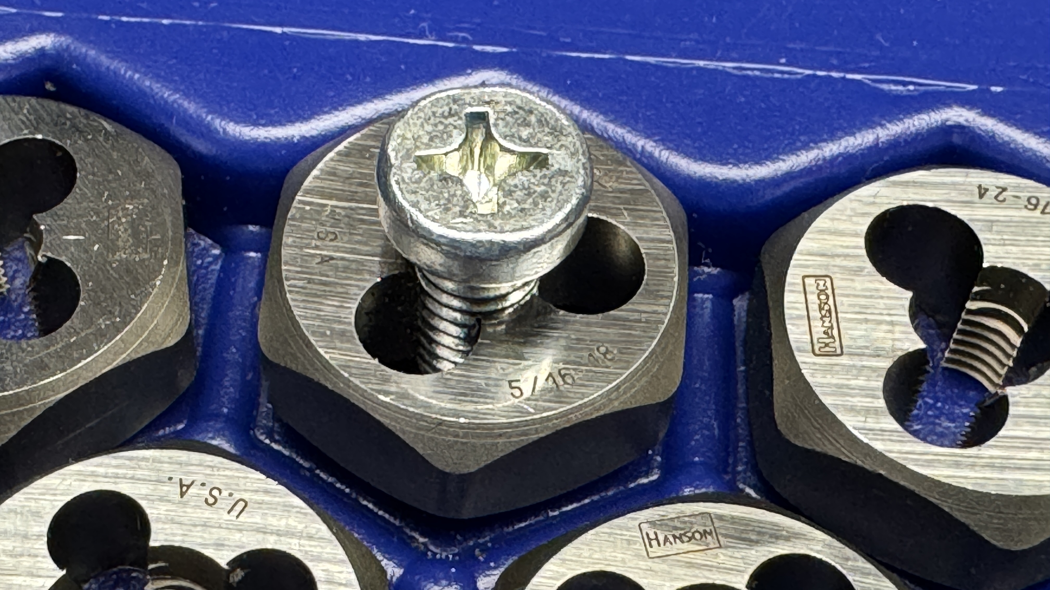 A: 5/16 x 18 is thread type on the bolt for Irwin T8D Replacement Jaw Plates - Pair Jaw Plates (8") & Screws for #8ZR Mechanics Vise