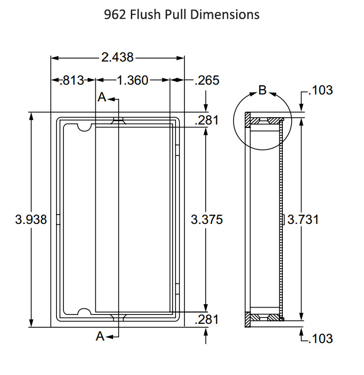 Rectangular Flush Pull with Black Inset 2-1/2"