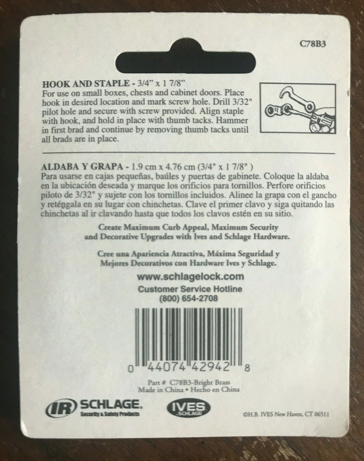 IVES C78B3 Hook and Staple - Pack of 5 - Polished Brass