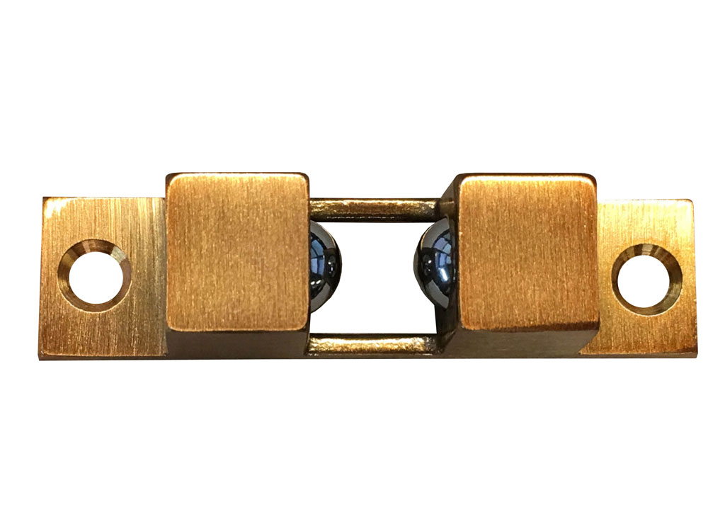 The strike slides between two stainless steel balls that are under spring tension. As the strike engages, the door is held tightly shut.