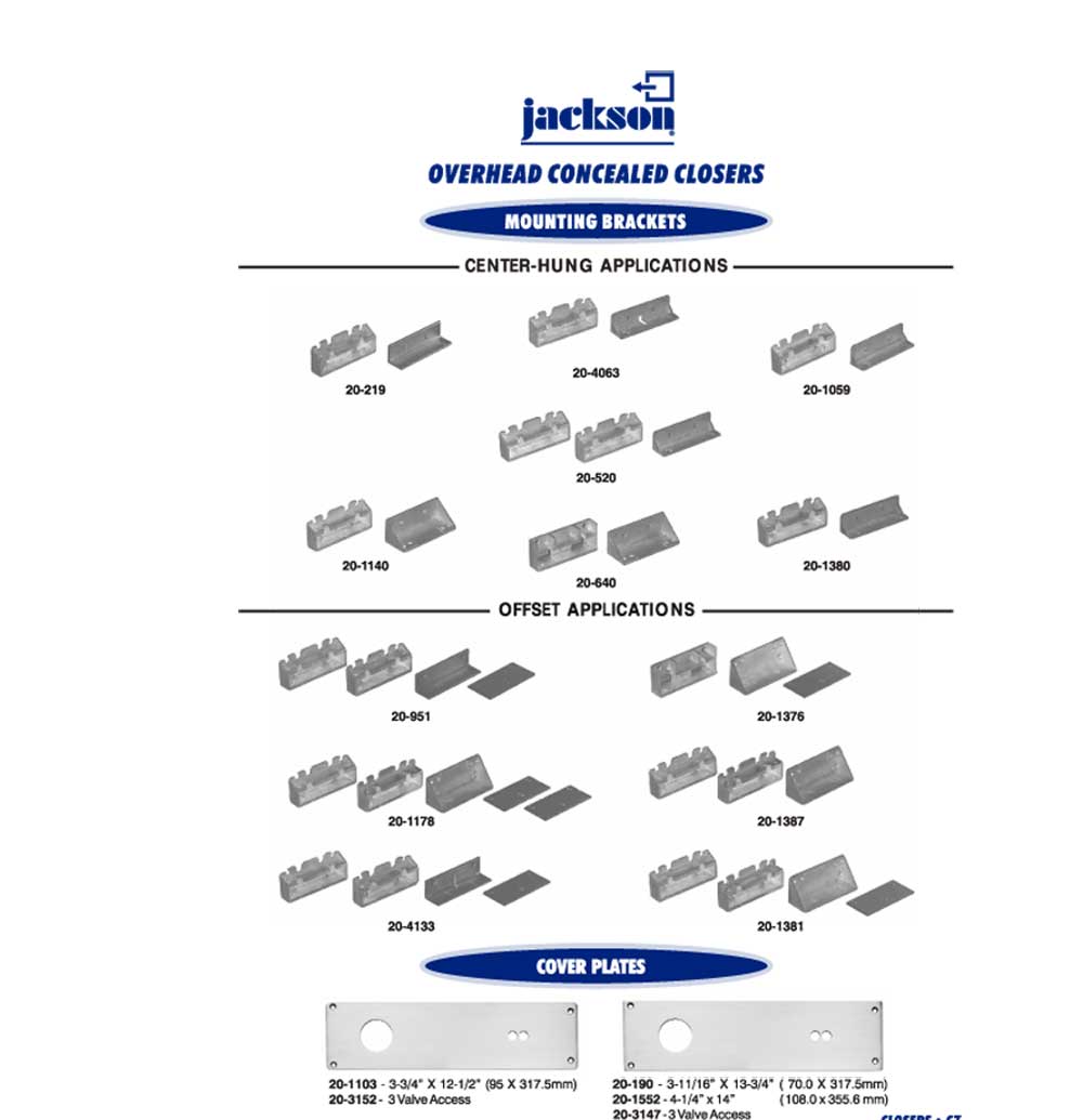 The 20219 "D" mounting clip package is designed for use with the Jackson® adjustable OHC closer