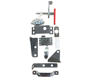 Hardware: Hardware includes a heavy duty hinge, slam latch, heavy gauge automatic hold open arm with red grip, compression spring-operated cylinder, exterior handle with integral padlock hasp, and interior locking handle with interior padlock hasp.