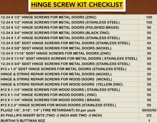 12 Hinge Screw Combo Kit: with 1000 hard to find hinge screws needed to repair and maintain commercial doors