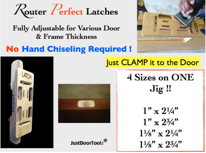 Latch Jig has 4 sizes on One Jig: 1" X 2-1/4"....1" X 2-3/4"....1-1/8" X 2-1/4"....1-1/8" X 2-3/4"
