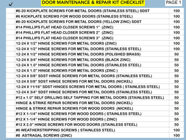 Door Maintenance and Repair kit used for Fire Doors and Non-Rated Doors too