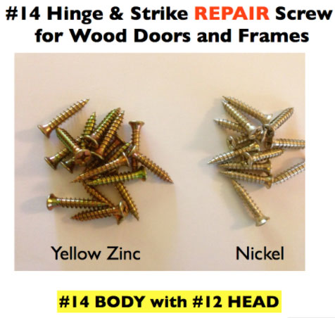 #12 Flat Head Screws with #14 oversized threads to replace wallowed-out hinge screws and strikes in Wood Doors or Wood Frames