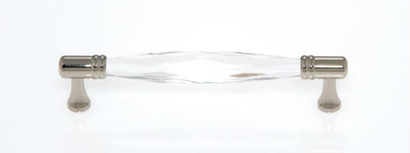 JVJ 33714 Polished Nickel Finish 128mm C/C Faceted 31% Leaded Crystal Pull, Composition Solid Brass