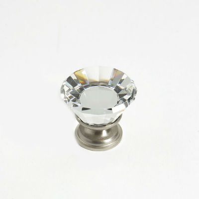 Satin Nickel Finish 30 mm (1 3/16") Flat Top 31% Leaded Crystal Knob, Composition Solid Brass