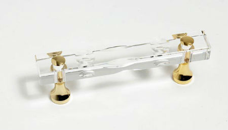 24 K Gold Plated Finish 3" C/C Routered 31% Leaded Crystal Pull, Composition Solid Brass