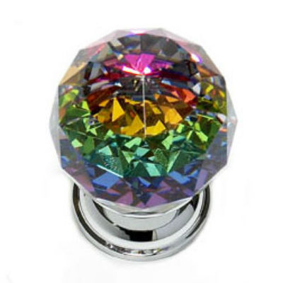 JVJ 35626 Chrome Finish 30 mm (1 3/16") Round Faceted 31% Leaded Crystal Knob with Prism, Composition Solid Brass