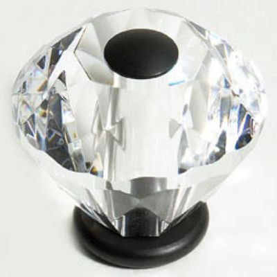 Oil Rubbed Bronze Finish 30 mm (1 3/16") Diamond Cut 31% Leaded Crystal Knob, Composition Solid Brass