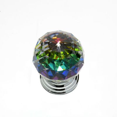 Chrome Finish 50 mm (2") Round Faceted 31% Leaded Crystal Knob with Prism, Composition Solid Brass