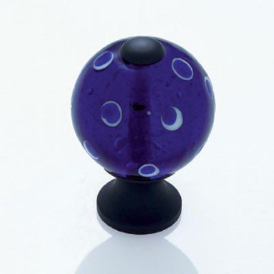 JVJ 44120 Oil Rubbed Bronze Finish 30 mm Round Glass Knob - Blue Polka Dots, Composition Glass