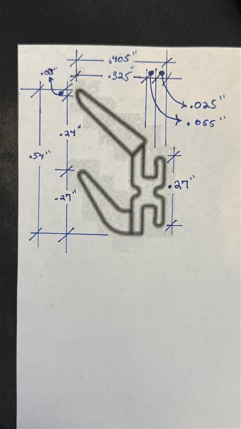 Please scroll down and review the factory provided dimensional cross section of the Kawneer 027557 FOOT Standard Door Glazing Gasket for Double Glazing - Priced and Sold per Foot