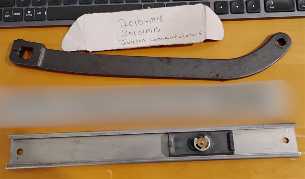 The concealed top arm and track are adaptable to most Kawneer entrance doors