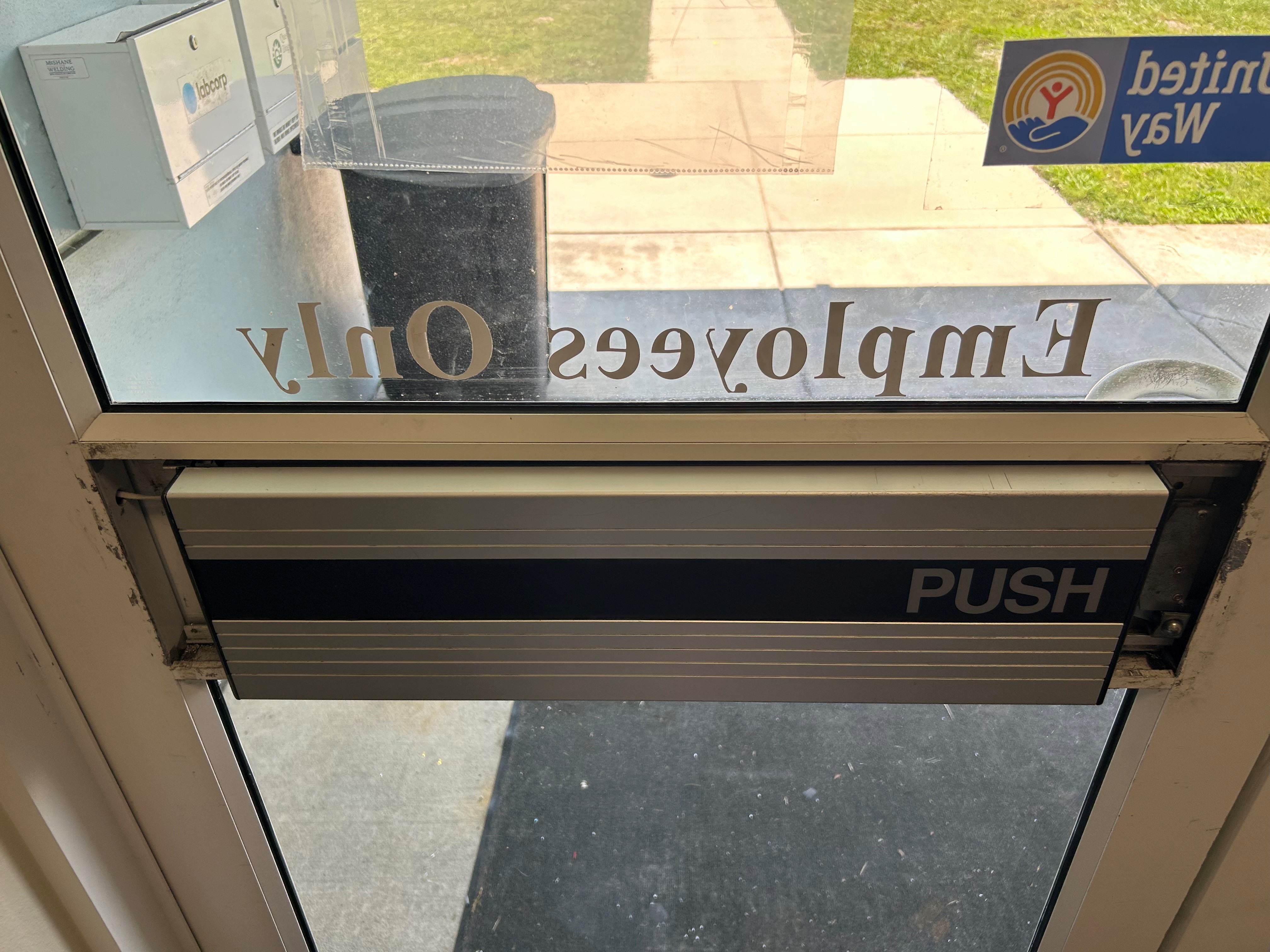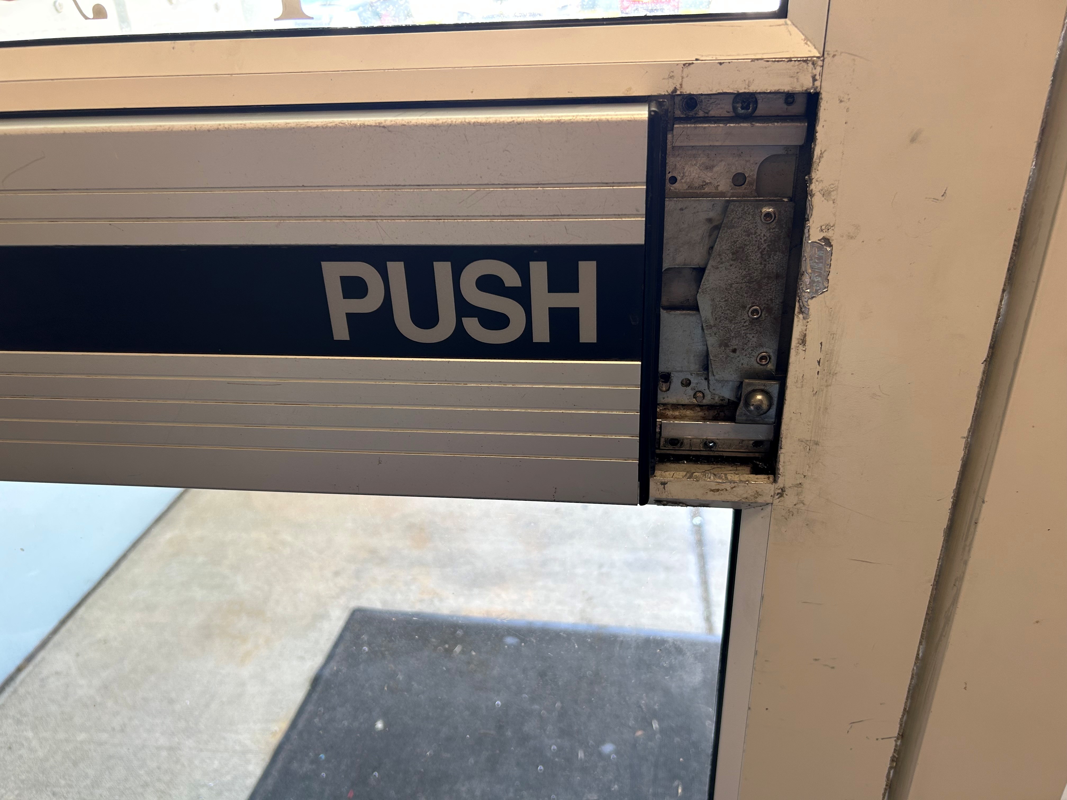 You can also consider the Command Access MLRK1-KAWP Motorized Latch Retraction Kit, the Kawneer Paneline Series as seen here: