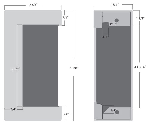 2-3/8" W x 5-1/8" H x 1-3/4" D