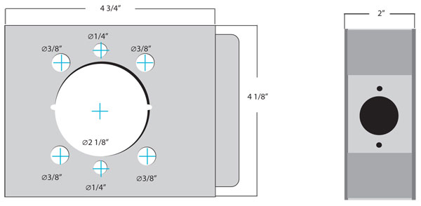 K-BXRHO-SS Weldable Gate Box, Cylindrical, 2 3/4" Backset, 2 1/8" Hole, Suitbale for Schlage Rhodes and Many Other Lever Sets Universal Hole Pattern, 16 Gauge Stainlees Steel