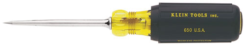 Scribes metal, starts screw holes, performs a variety of piercing and punching jobs.