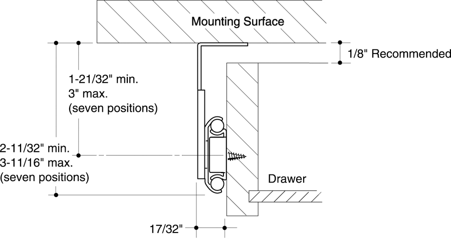 Side Height: Overall drop height: 2-11/32" to 3-11/16" in 7/32" increments