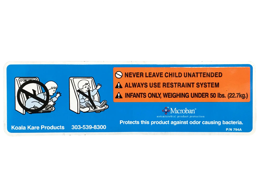 Koala Kare 794 Replacement Warning Label for Child Protection Seat KB102