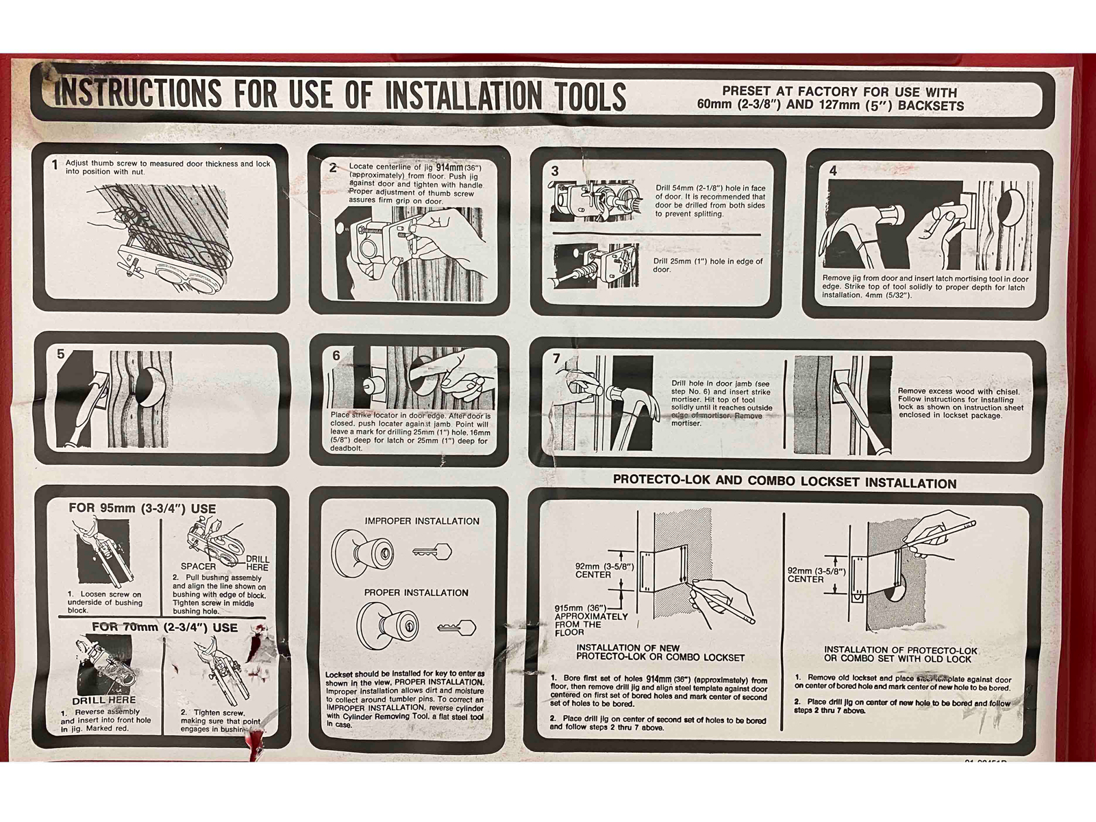 of which we still have some left in stock at this time at least in the middle of 2020. This tool was/is a favorite of handyman companies and locksmiths alike and back then we knew that we would sell approximately 1 per week. This kit is new old stock and is thoroughly unused and brand-new in every respect. The photographs below are the actual unit that you would purchase.