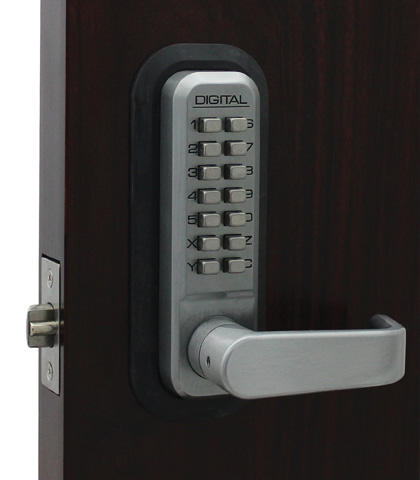 Pushbutton Lock 2835-SC is mechanical, keyless lever lock with with single sided combination and Satin Chrome finish. Lever handle is installed on exterior and interior side of the lock body. 2835-SC has auto-locking with passage function, adjustable latch and reversible handing. It is dedicated to exterior or interior using. Mounts in standard 2 1/8" hole. One user code with thousands of possible combinations works as a lock key. The mechanical pushbutton lock requires no wires, batteries or electricity. Locks fit doors 1 3/8" to 2" thick with a 1 1/8" backset. The Pushbutton Lock is very easy and quick to install - installs in minutes with EZ plates and very easy to change code. For thicker doors, an Extension Kit is available - extensions for doors up to 5? in width. These provide keyless security, fit most doors and are weather resistant.