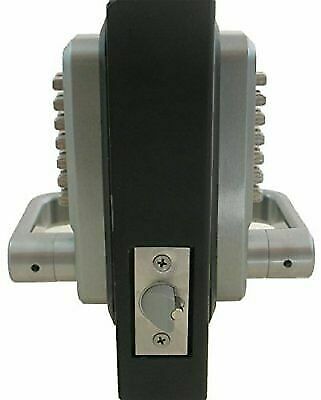 Pushbutton Lock 2835-SC-DC is mechanical, keyless lever lock double sided combination, with Passage Function and Satin Chrome finish. Lever handle is installed on exterior and interior side of the lock body. 2835-MG-DC is bump proof, pick proof lock that does not require wires, batteries or electricity. This is a MARINE GRADE double sided combination lock and is ADA Compliant. It has auto-locking with passage function or can be set to lock everytime the door closes. The passage function allows the springlatch to move freely, in and out, until you lock it again. Also the 2835-SC-DC has adjustable latch and reversible handing. It is dedicated to exterior or interior using. Mounts in standard 2 1/8" hole. One user code with thousands of possible combinations works as a lock key. The mechanical pushbutton lock requires no wires, batteries or electricity. Locks fit doors 1 3/8" to 2" thick with a 1 1/8" backset. The Pushbutton Lock is very easy and quick to install - installs in minutes with EZ plates and very easy to change code. For thicker doors, an Extension Kit is available - extensions for doors up to 5? in width. These provide keyless security, fit most doors and are weather resistant.