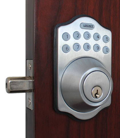 Electronic Digital Deadbolt Lock E-910-SC is lock with capability for up to six user codes and one disposable user code. E-910-SC has Satin Chrome finish. You can program and change 4-10 digit codes at the touch of a button. Remote Control is included in the set. Electronic Digital Knob Lock E-910-SC has a lot of benfits such as: auto-locking function which improves security and convenience, battery powered-no messy wiring, low battery indicator, ability to temporarily disable user codes. The Knob Lock is very easy and quick to install - installs in minutes with Trim plates and very easy to change code. The lock fits to regular door prepared (2 1/8"). This product has customizable programming code for setup, ability to temporarily disable user codes. LED illumination allows for easy operation in the dark. Outside Lock Body is weather resistant. Inside Lock Body is for interior use only. Perfect to replace existing door knob or deadbolt or for brand new doors to provide keyless security