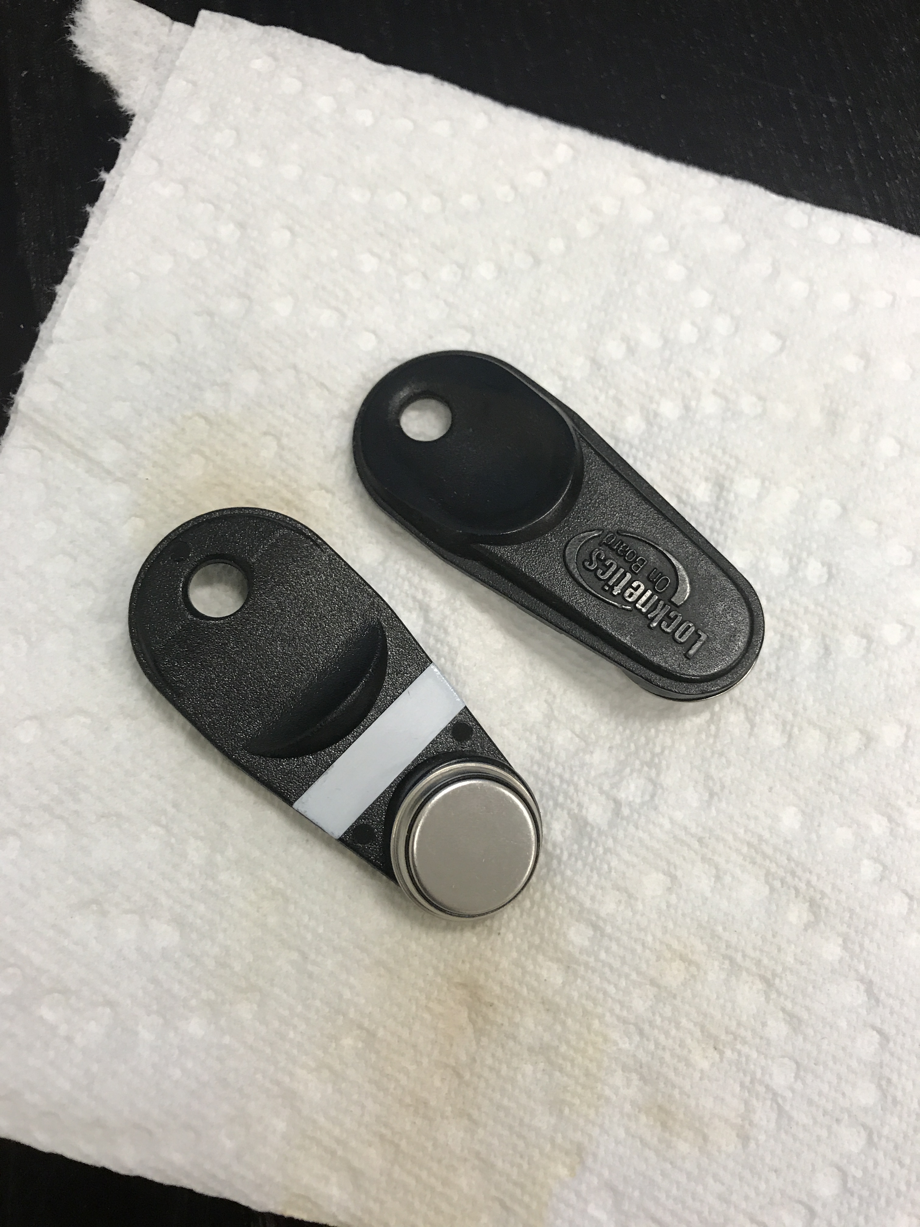 A: The fobs for the 101 mag locks are part number IBF, seen below but are no longer available for purchase and the new iButtons which have the same number don’t work on the 101+ locks as the IC on the fobs changed.