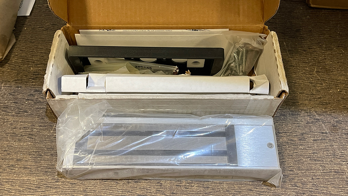 electromagnetic lock with 1500 lbs. of holding force.