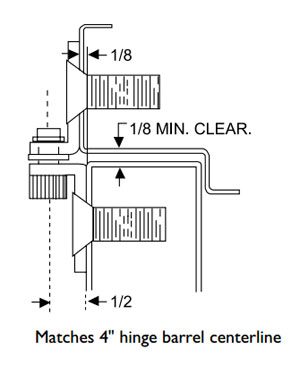 • Designed with a 1/2" offset to match the pivot point of a 4" wide butt hinge