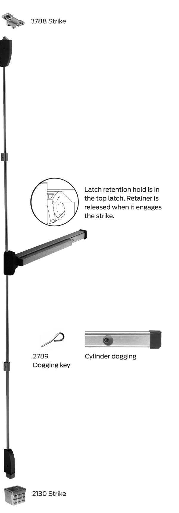 Electric Function: Can be interfaced with building security systems. Latch retraction, lock/unlock, security monitoring, electric dogging, exit indicator, latch retract indicator and exit alarm available.