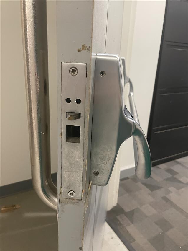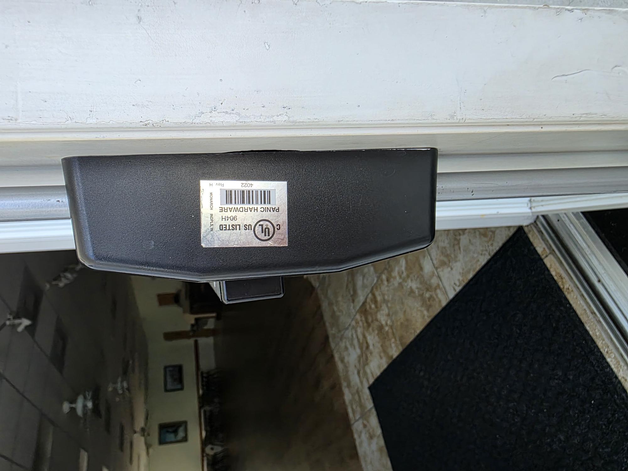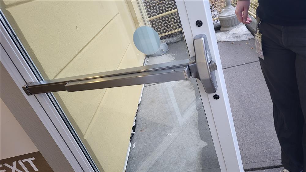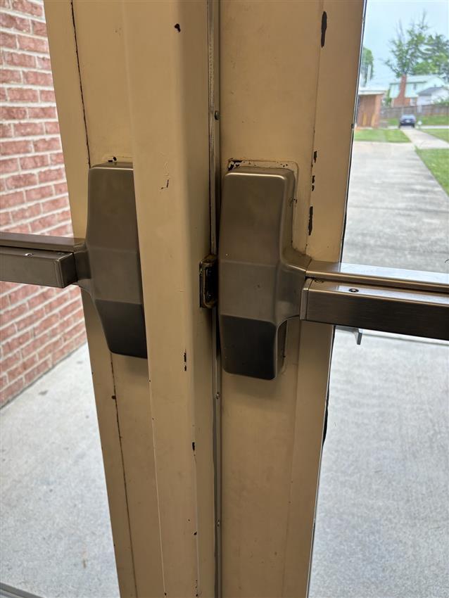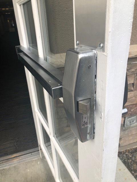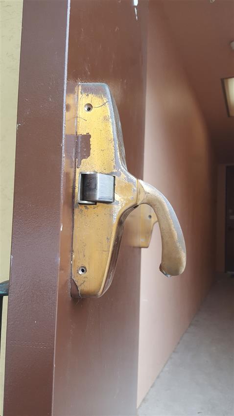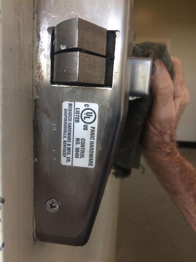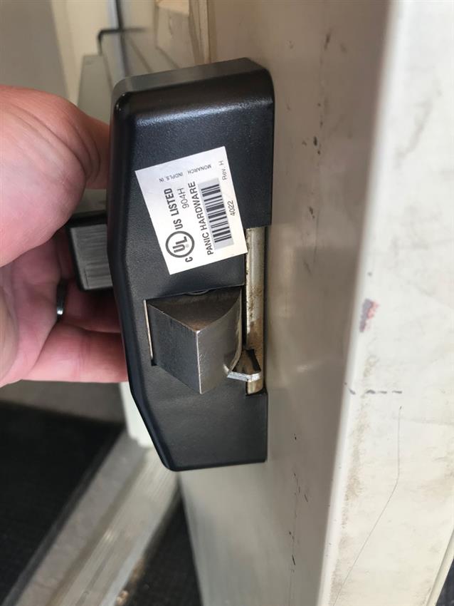 Q: Richard: I'm the guy that called yesterday about replacing this door handle because the keys have gone missing. It's your standard Panic Hardware 904H. See the two images here: