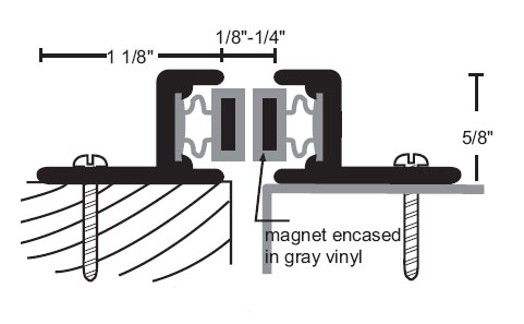 Magnetic Astragal Set, Set Includes: 2 x 84" pieces, Clear Anodized Aluminum with Magnet encased in gray Vinyl, Insert Projection: 1/8" - 1/4", Screw Mount