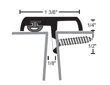 Overlapping Astragal Seal, Length: 96", Aluminum Holder with Black Neoprene insert, Holder Width: 1 3/8", Insert Projection: 1/4", Screw Mount