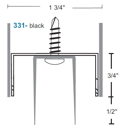 36" Length, Door Shoe with Flexible TPV Double Fin, Heigth: 1-3/4", Material: Black Rigid Polypropylene Top with Flexible TPV, Screw Mount