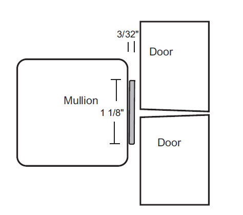 • Neoprene sponge strip 1-1/8" wide x 3/32" thick with an adhesive strip for mounting directly to the face of the mullion that doors clode against.