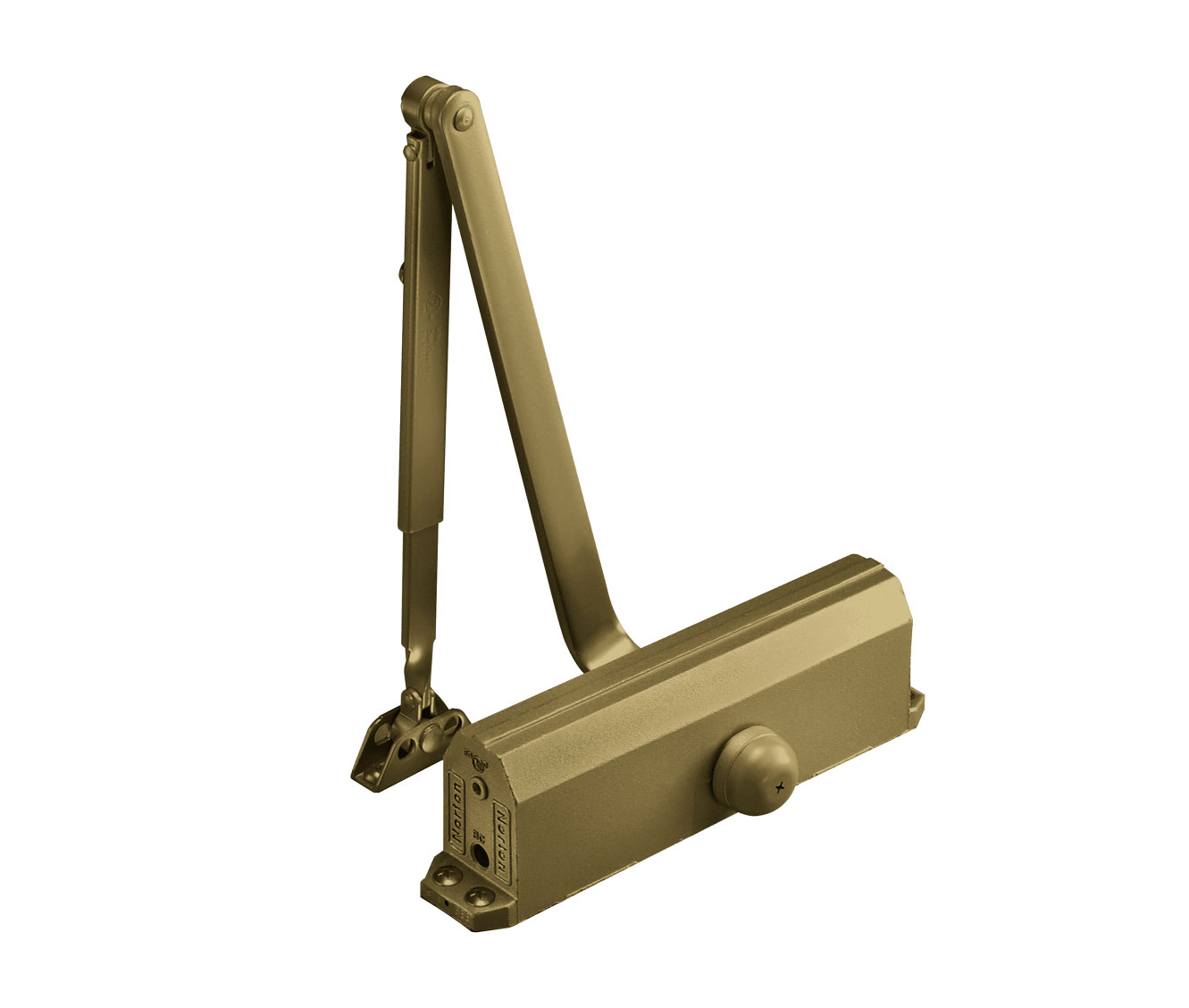 Norton 1601 696 Grade 1 Adjustable Surface Door Closer Regular Double Lever Arm Non-Hold Open, Painted Satin Brass